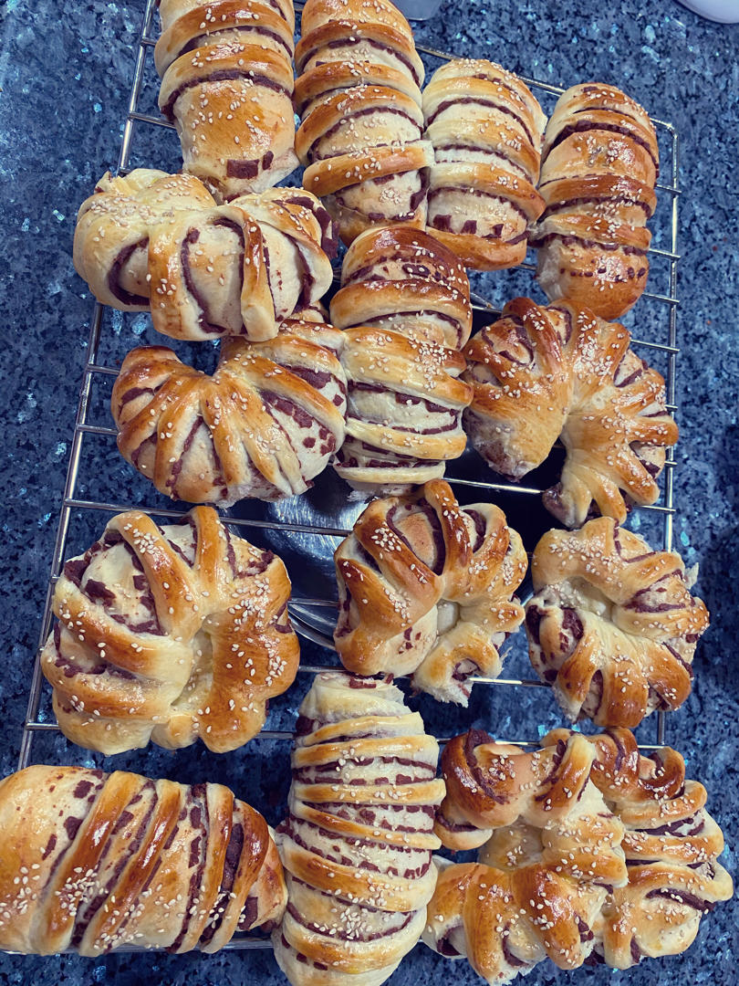 学会发酵了,大致摸清了大烤箱的脾气了,烤面包类的要它默认温度的18分钟左右,颜色最诱人。