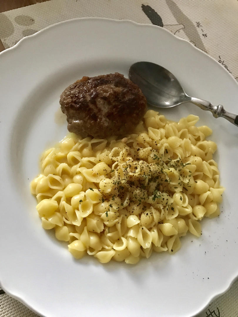 女儿的午餐~~牛肉饼➕小贝壳cheese意面(每天吃什么真的很让人头疼😫)