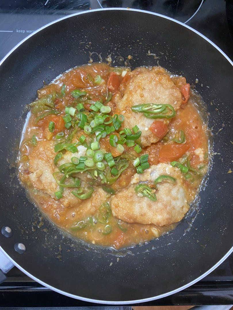 costco的速冻鳕鱼块有了新吃法,本来是要bake10分钟,现在把冷冻鳕鱼块用来和番茄直接炒,很好吃哦