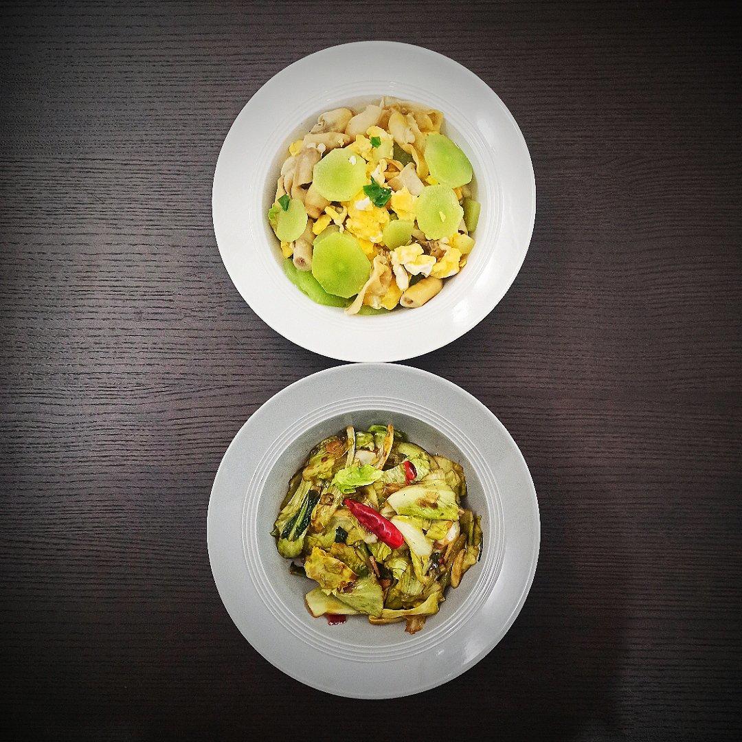 蛏子莴笋炒蛋+爆炒牛心菜
