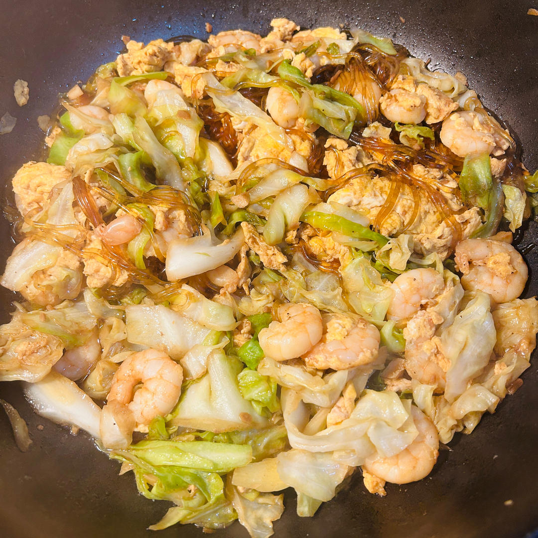 【包菜粉丝炒鸡蛋虾仁】