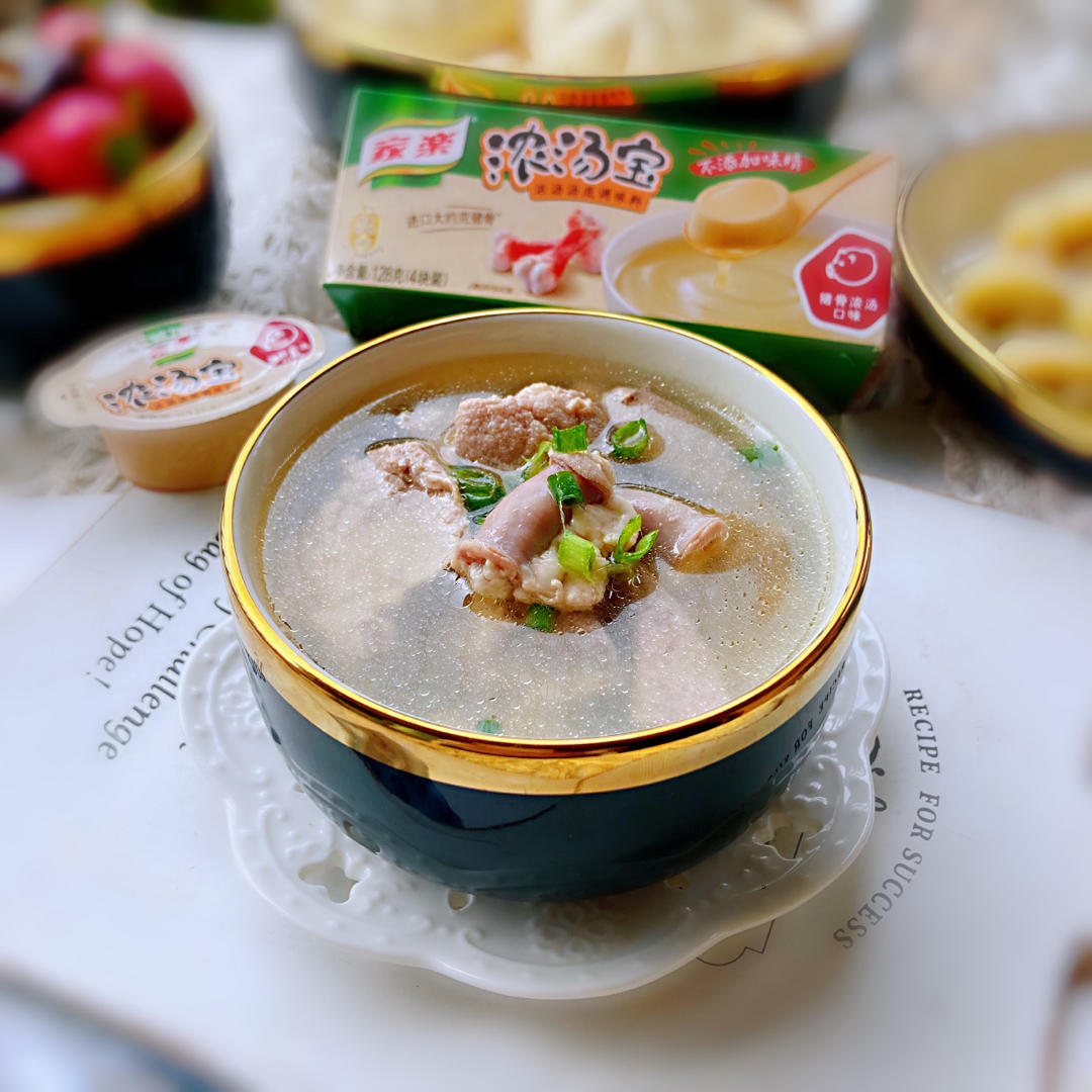 用家乐猪骨浓汤宝做汤底炖的猪肝瘦肉粉肠汤,营养丰富,汤鲜味美,鲜得掉眉毛,太好喝啦。#早餐•202...
