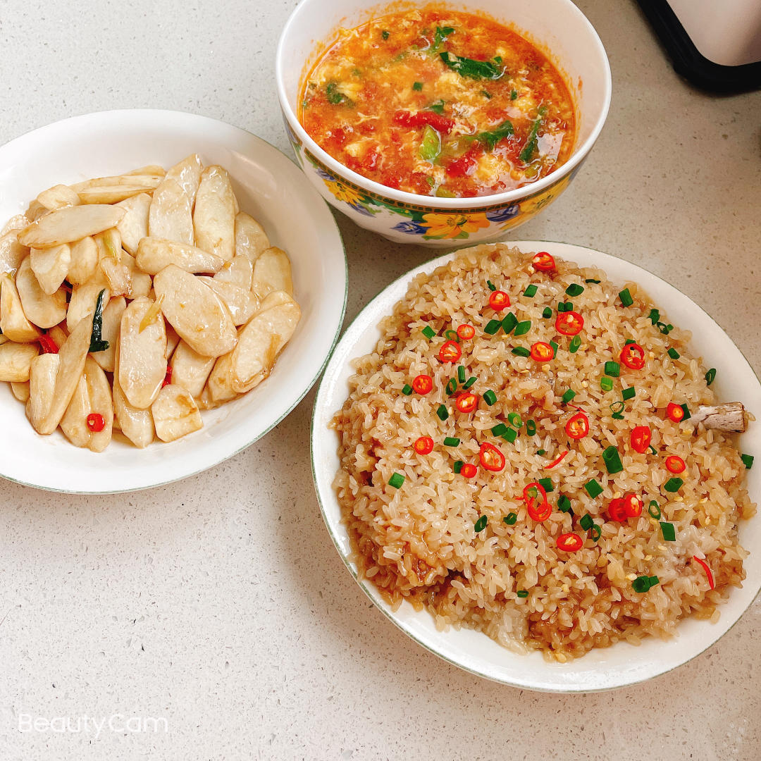 糯米排骨,醋溜山药,番茄蛋花汤