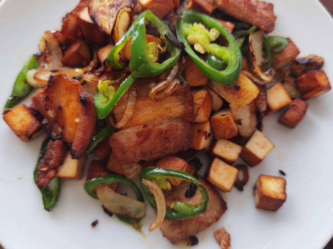 大杂烩之五花、洋葱、豆干、辣椒混炒,新家用的明火火候不太好掌握,下次得随时换小火,说来还...