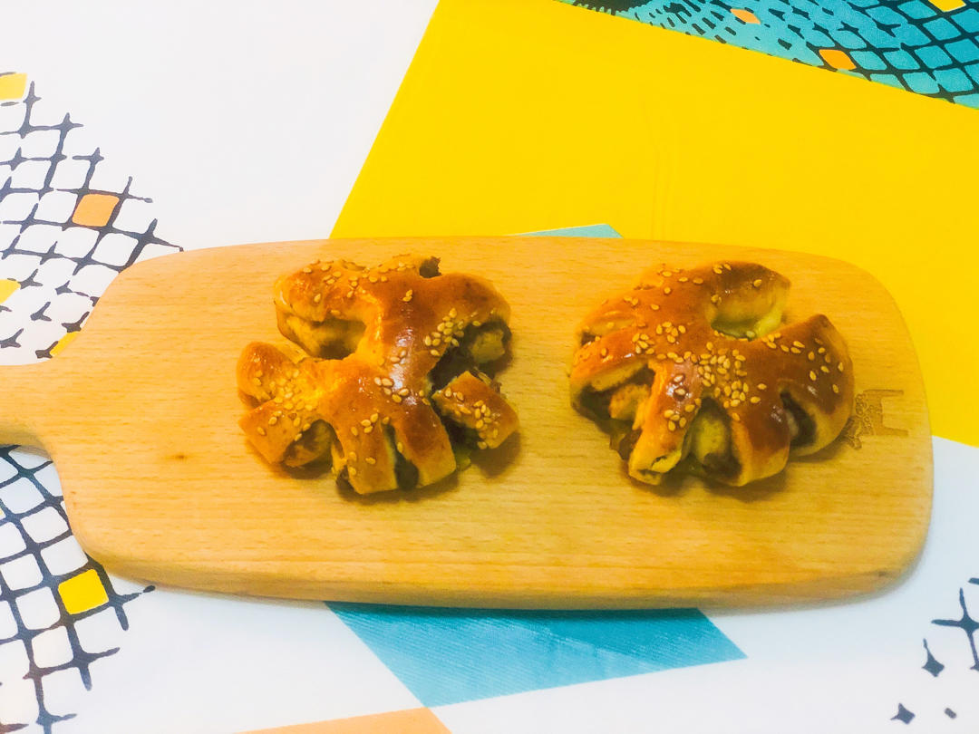 方子很好,烤箱太猛,差点烤过了。顺带把2个汉堡胚的量做了一盘迷你小汉堡。