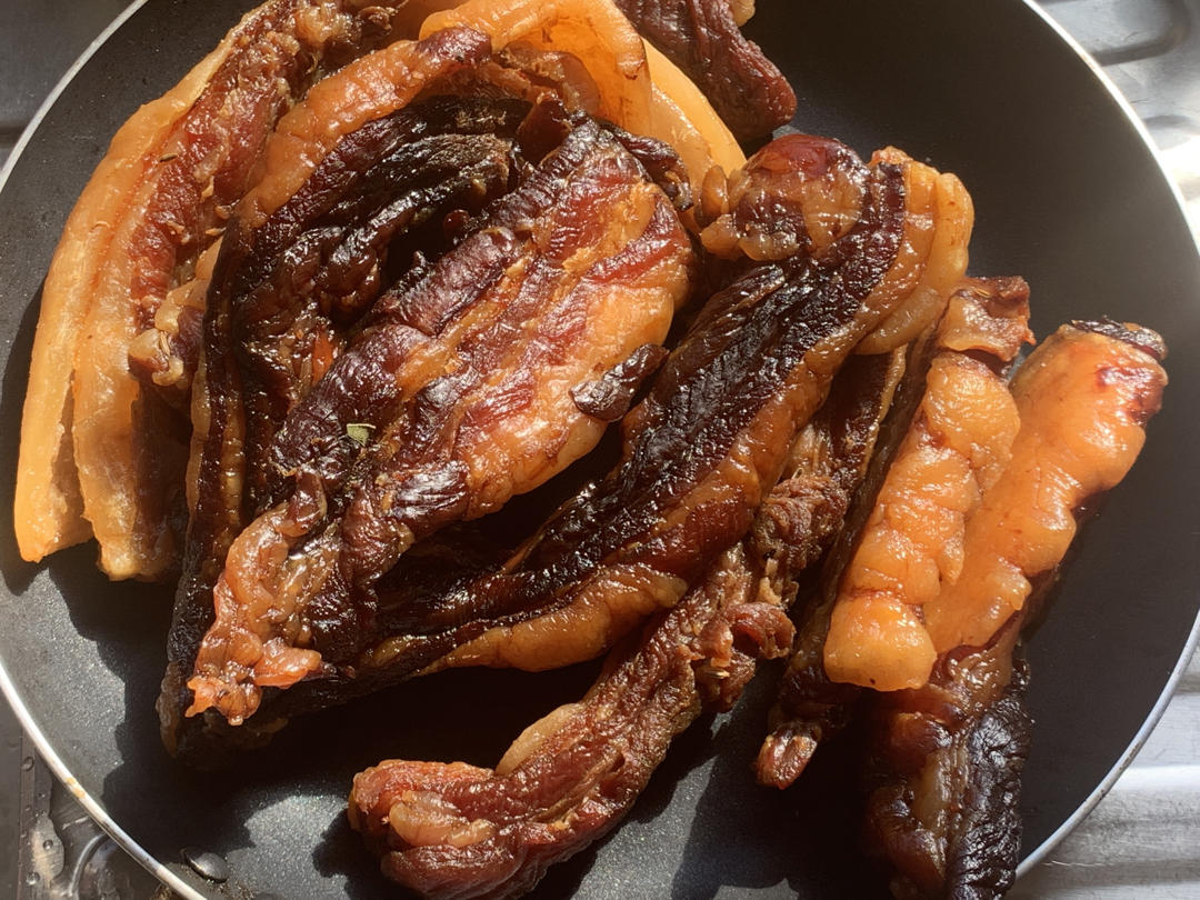 很下饭的红烧乱炖:五花肉,香菇,腐竹,胡萝卜。老公和孩子们却喜欢今天的黑暗料理 - 叉烧肉。😂 形状和颜色都不像叉烧肉,...