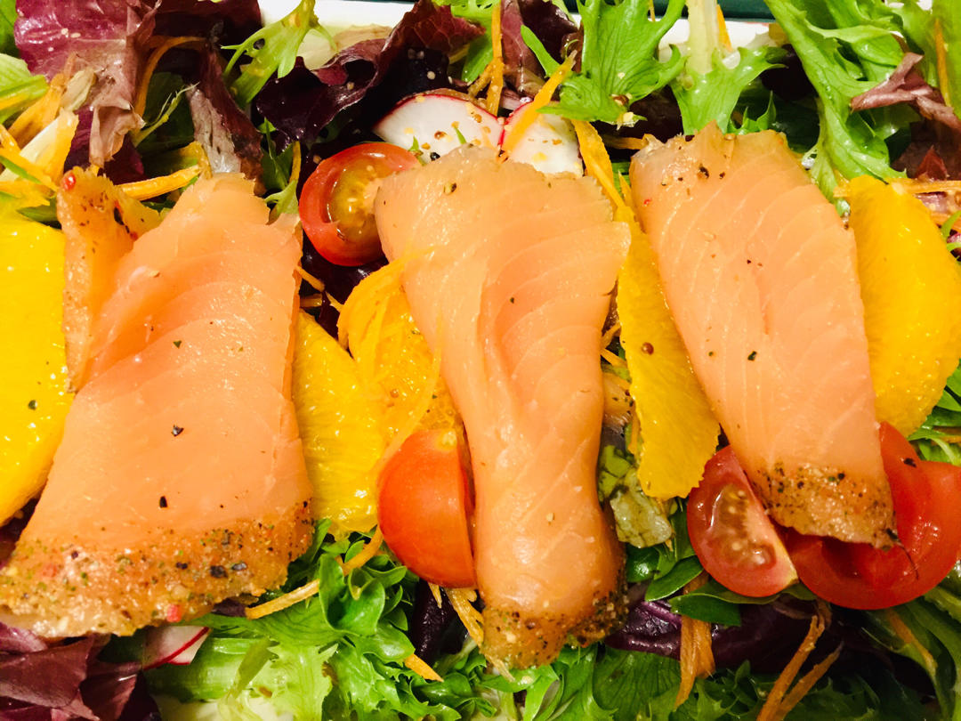 煙燻三文魚沙拉和HP醬烤豬里脊片。英國因為有著蘇格蘭大面積漁場,煙燻三文魚的價格相對比較親民。這也是為數不多的幾樣我愛吃...