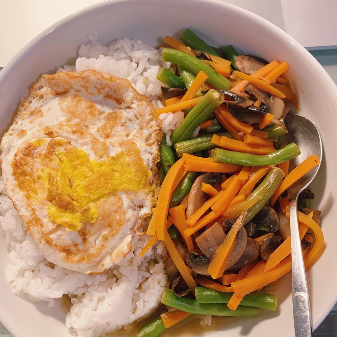 一人食·胡萝卜蘑菇刀豆➕荷包蛋🍳