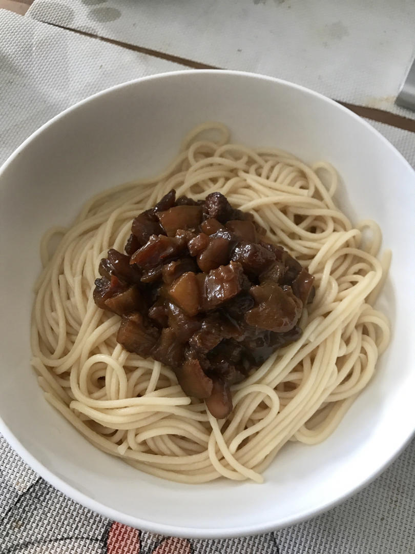 冰箱里还剩一只茄子🍆,午饭就吃茄丁打卤面🍜,酱香浓郁蛮好吃的😋