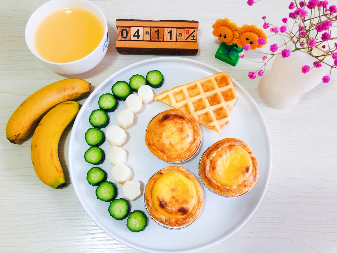 蛋挞,华夫饼,山药,黄瓜🥒,香蕉🍌,玉米粥