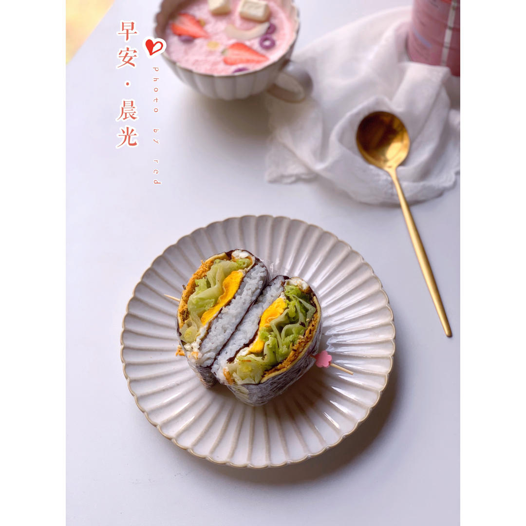 折叠饭团: 米饭➕生菜➕煎蛋➕芝士➕海苔肉松