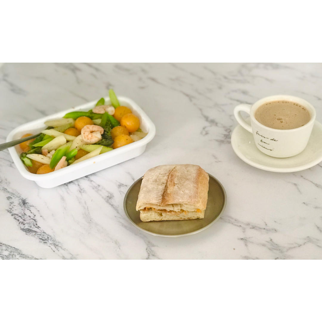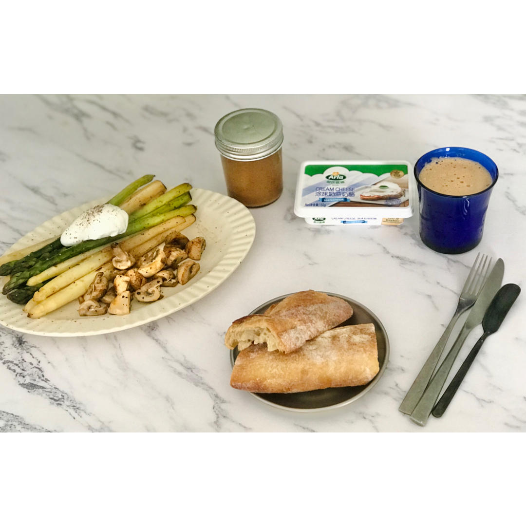 无花果芝士三明治|芦笋小番茄沙拉|燕麦奶拿铁