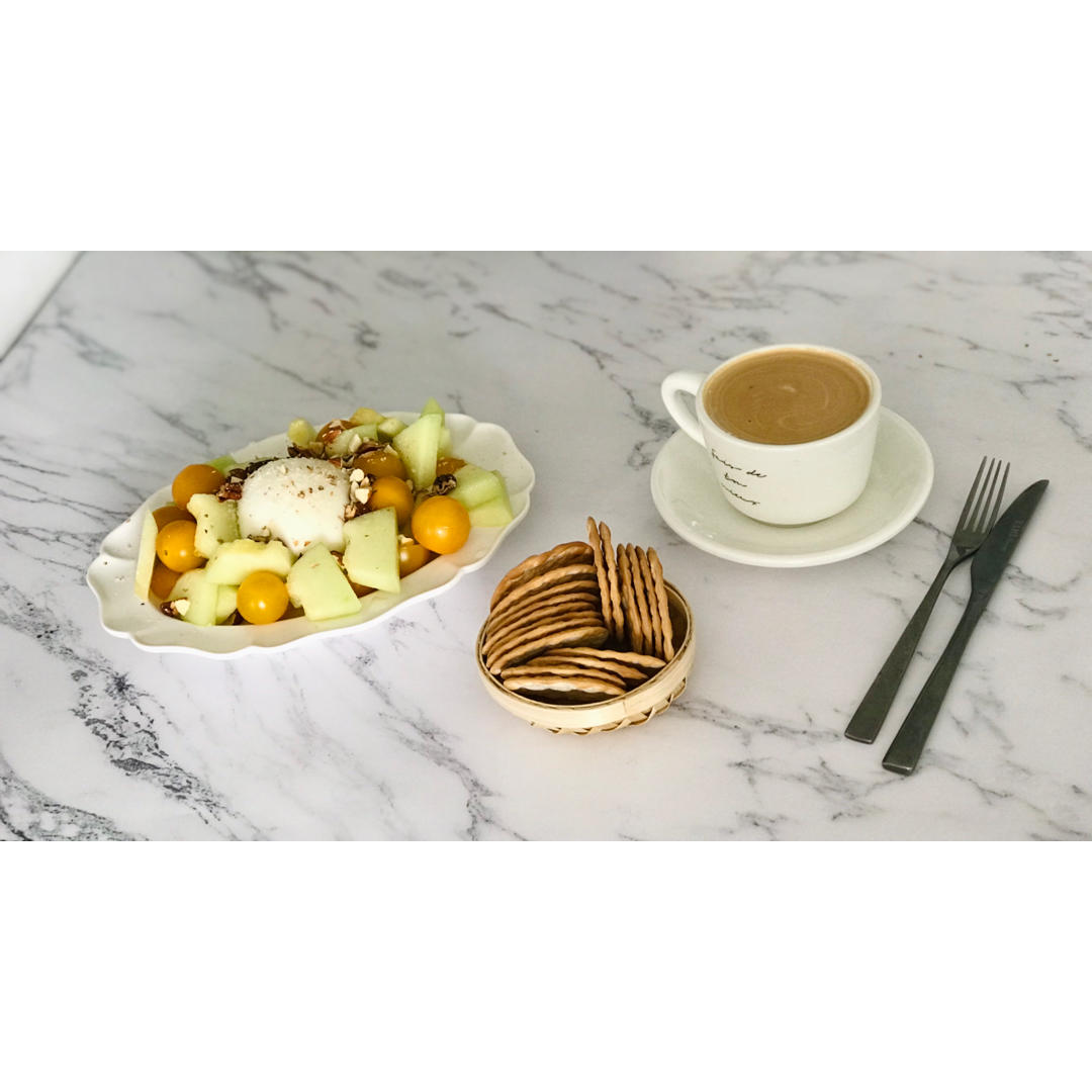 脆饼干和蜜瓜布拉塔~燕麦奶拿铁~
