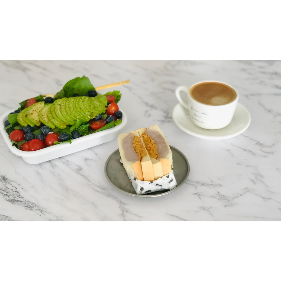 芋泥肉松三明治和牛油果沙拉~