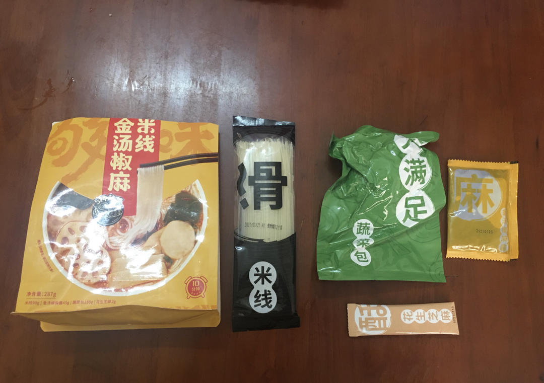 好吃的米线~米线是很细的那种,里面的蔬菜包都很新鲜。汤底味道很麻很辣,广东人民只能吃一半...