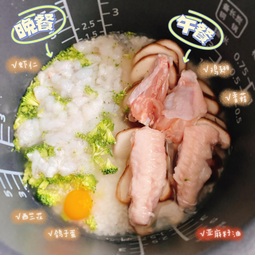鸡翅香菇焖饭+虾仁西兰花鸽子蛋焖饭