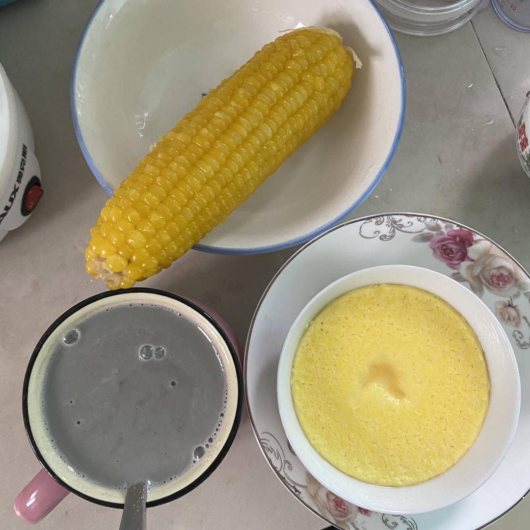 这种早餐也算营养丰富吧?! (香蕉🍌苹果🍎玉米🌽鸡蛋🥚坚果和咖啡☕)