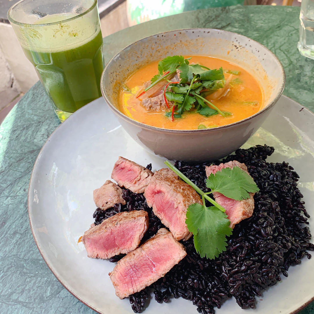 红咖喱牛肉饭&黄瓜菠菜苹果汁🍹
