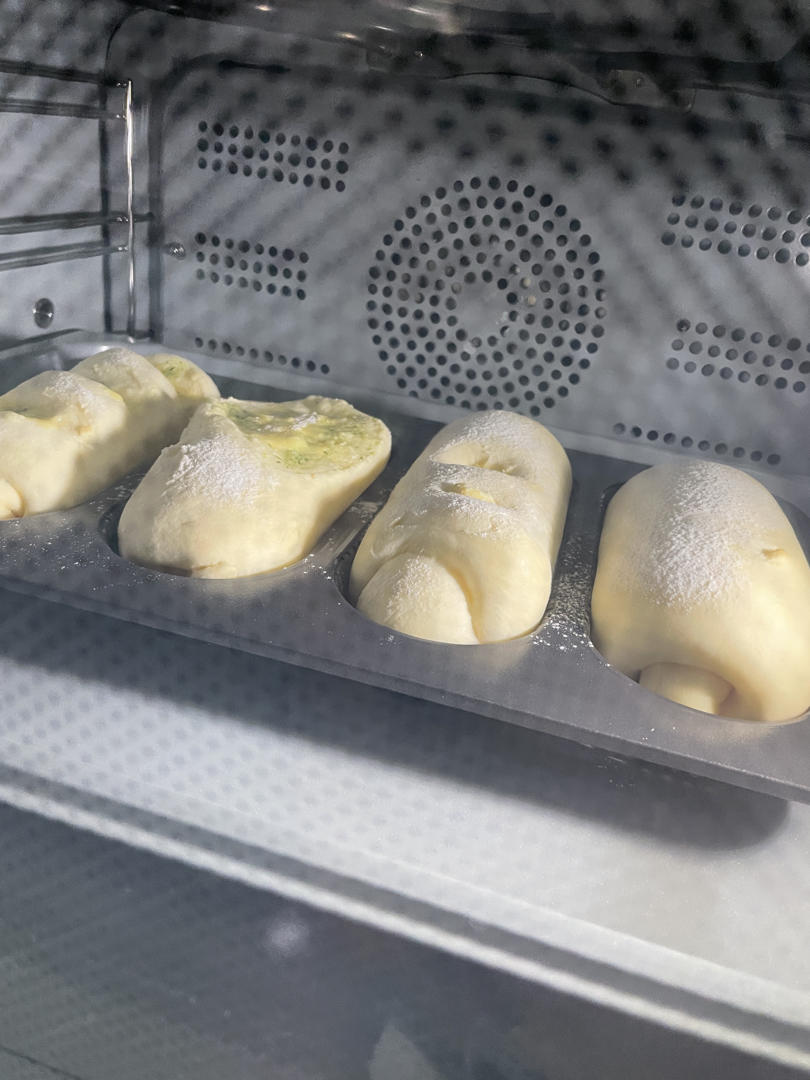 除了预热烤箱最后十分钟,面团又涨大了,粘在盖子上,我还手贱的推开来看,导致表面破损丑了一点,真的是自己...