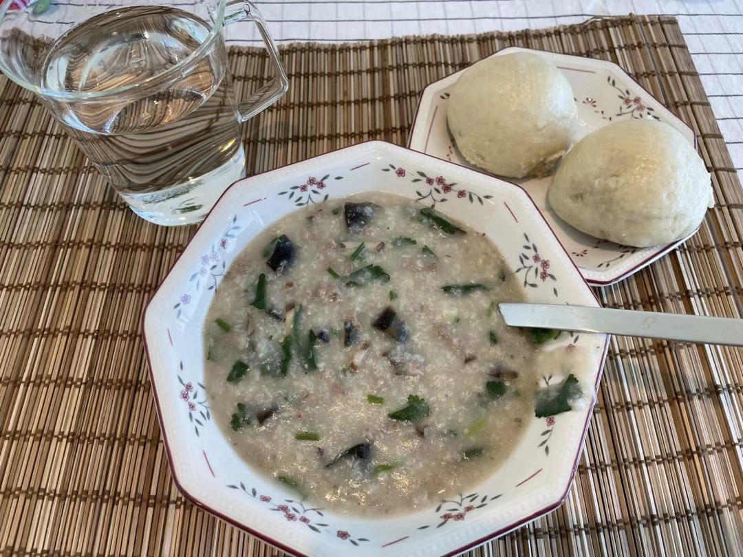 早餐水饺🥟、虾、荷包蛋、玉米🌽
