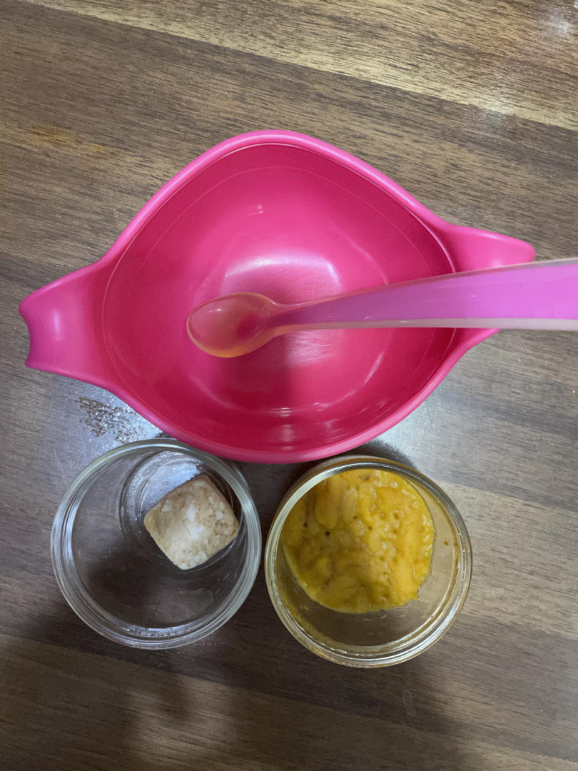 胡萝卜、南瓜、番茄、芜菁甘蓝、椰浆+、红小扁豆+,三文鱼