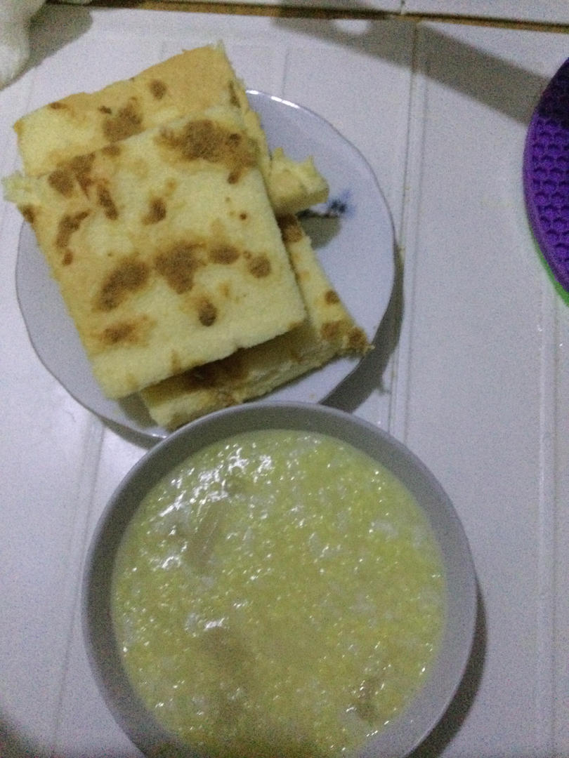 肉松蛋糕,配上黄小米生梨粥