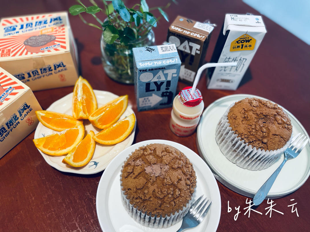 20210501养乐多+燕麦露+牛奶+雪顶戚风+橙子+苹果。