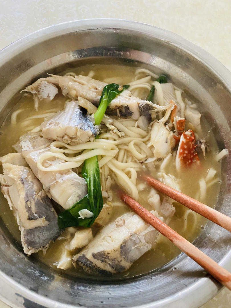 老爸做的海岛特色海鲜面,我做的健康西红柿鸡蛋荞麦面,都好吃,又健康。