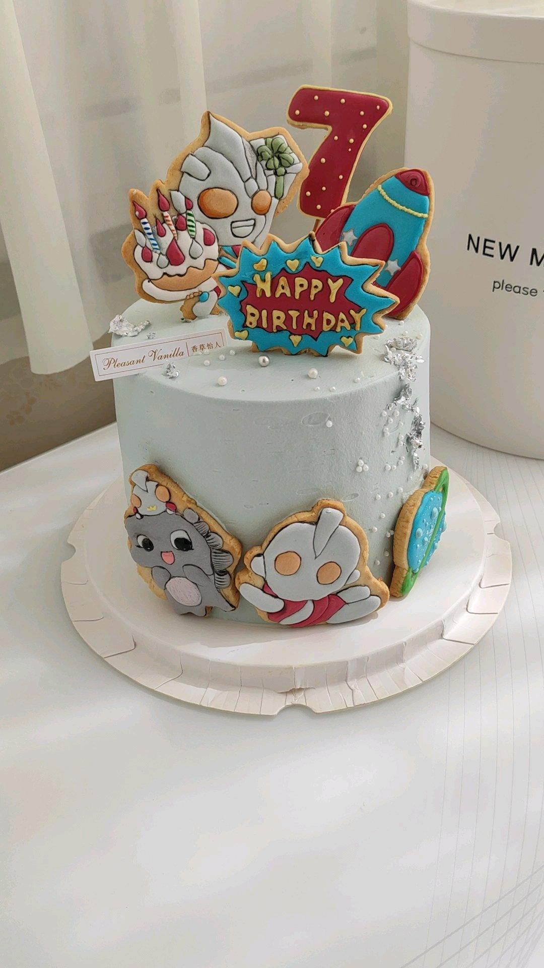 下午做的奥特曼糖霜饼干蛋糕