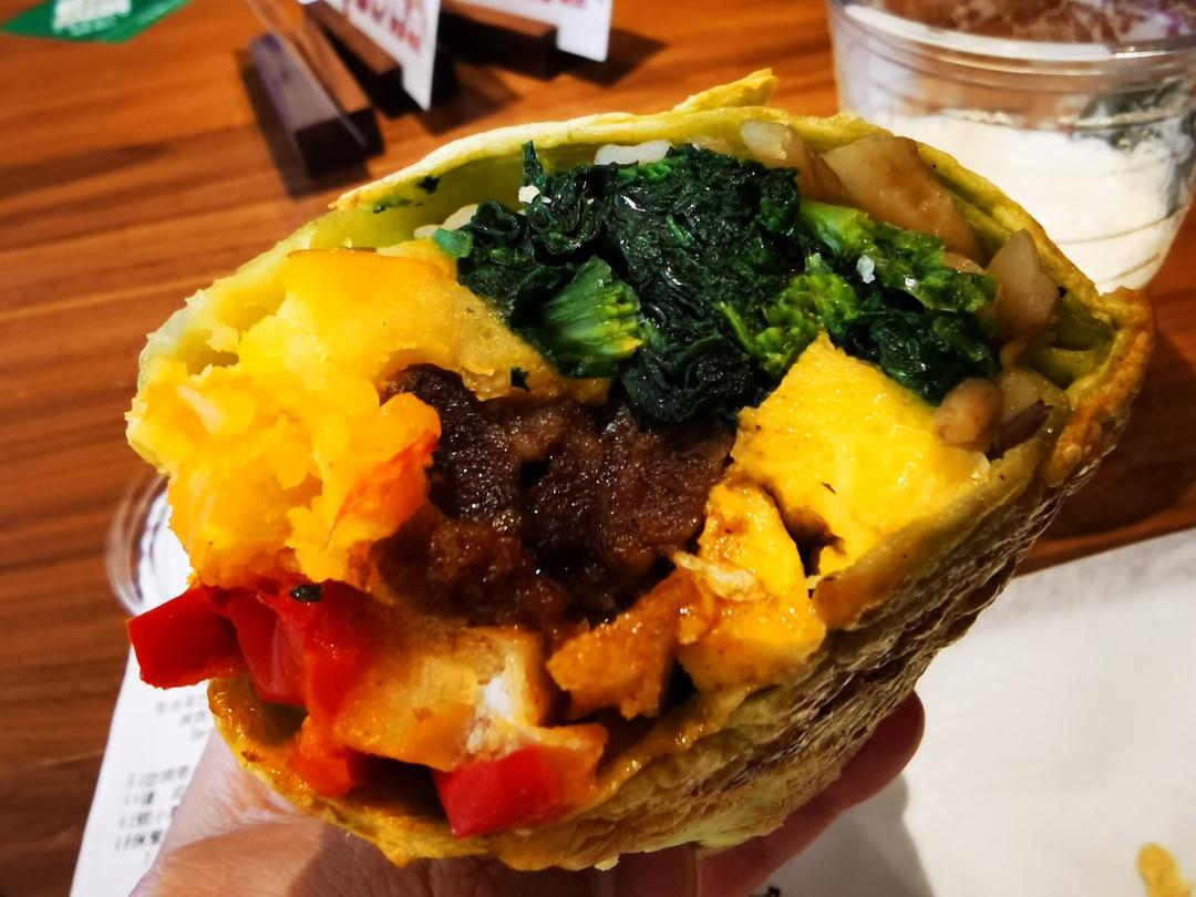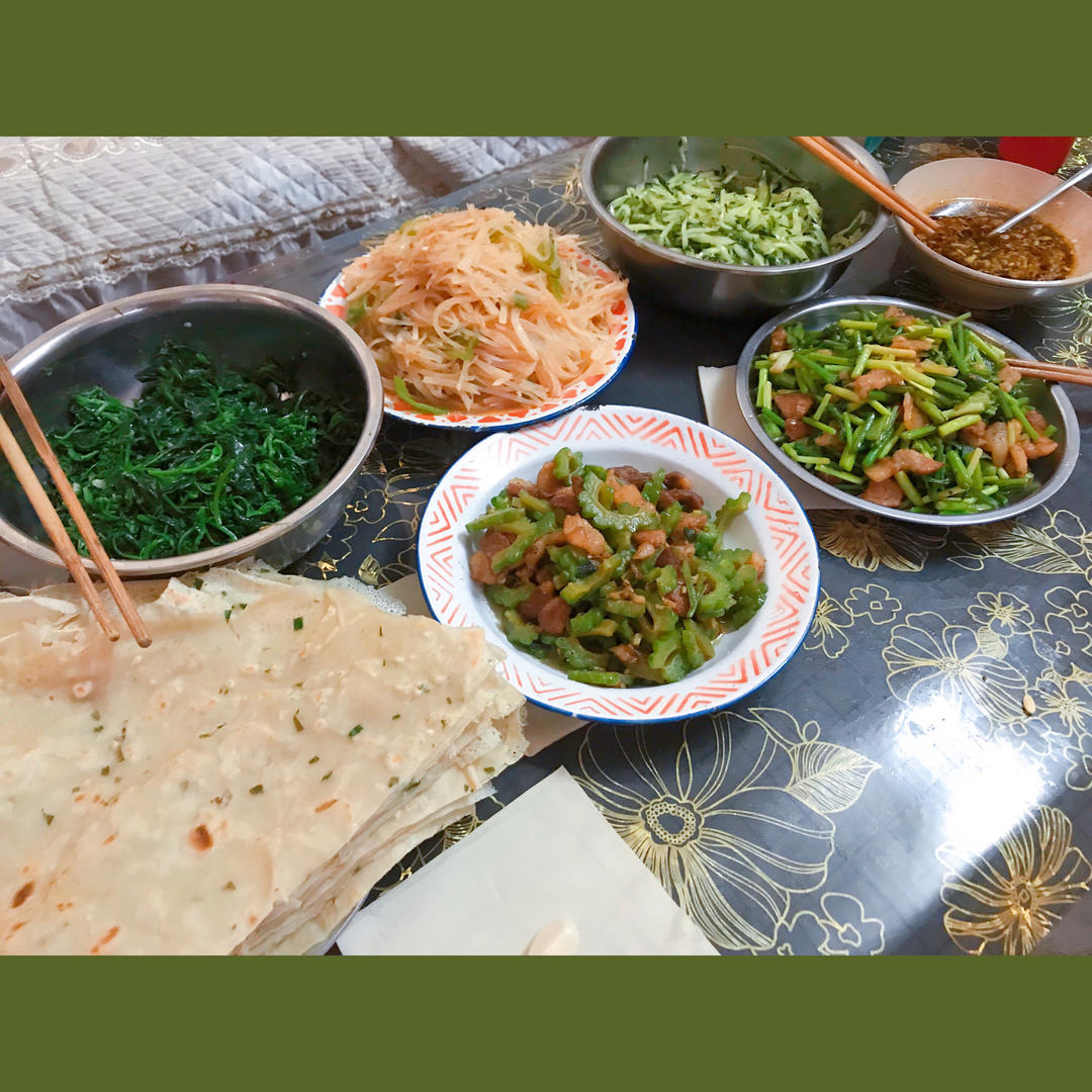 今天吃到妈妈做的煎饼了,卷土豆丝、黄瓜丝、灰灰菜真好吃😋