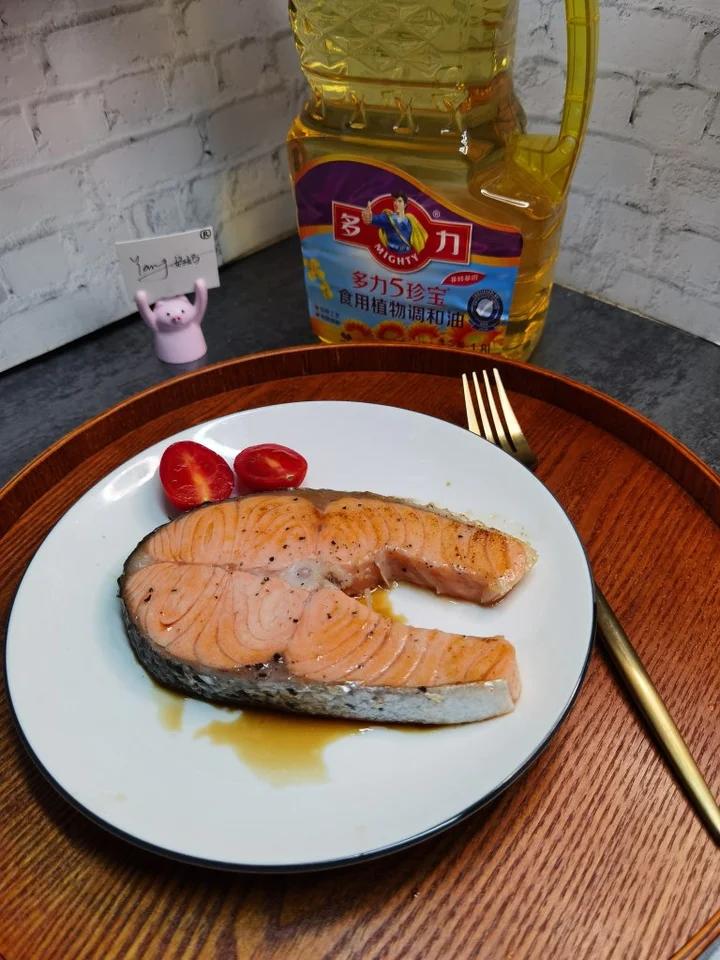 今天的三文鱼是孩子自己煎的,我在一旁指导😊