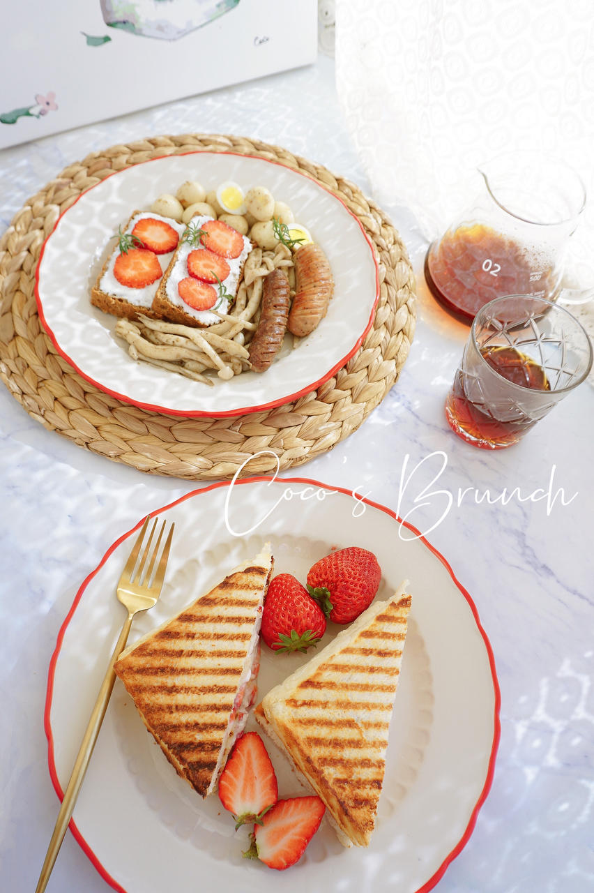 今天同样是双标早餐,于先生吃草莓酸奶三明治,我吃全麦快手面包,...