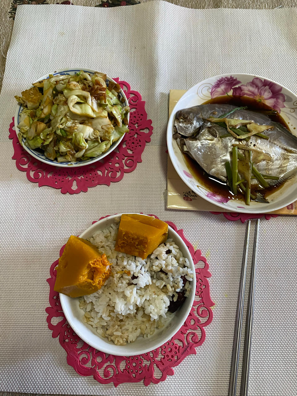 清蒸鲳鱼+小炒包菜+杂粮饭