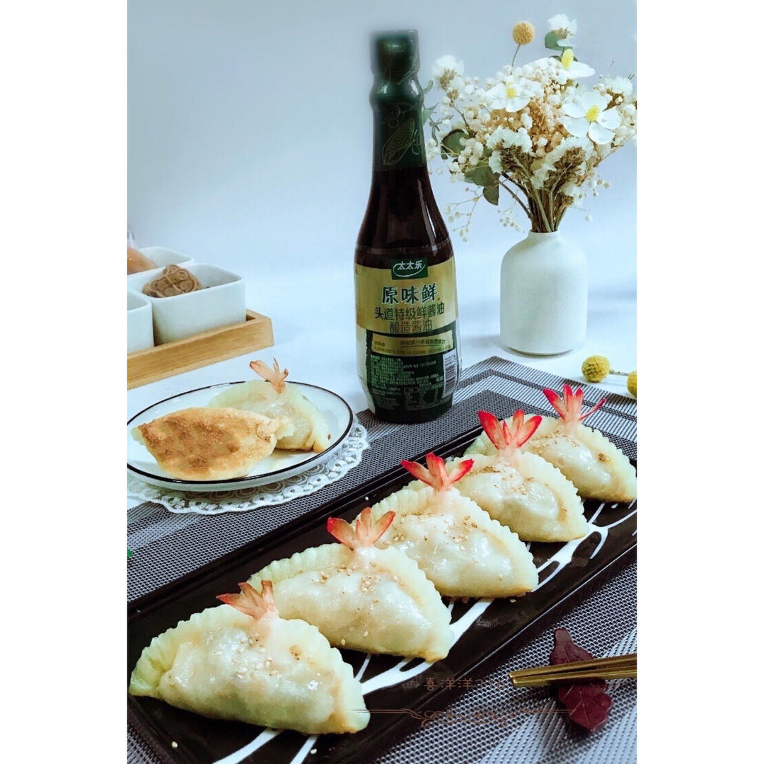 做虾仁煎饺我选用的“太太乐原味鲜”头道特级鲜酱油,虾仁自带鲜味,一口...