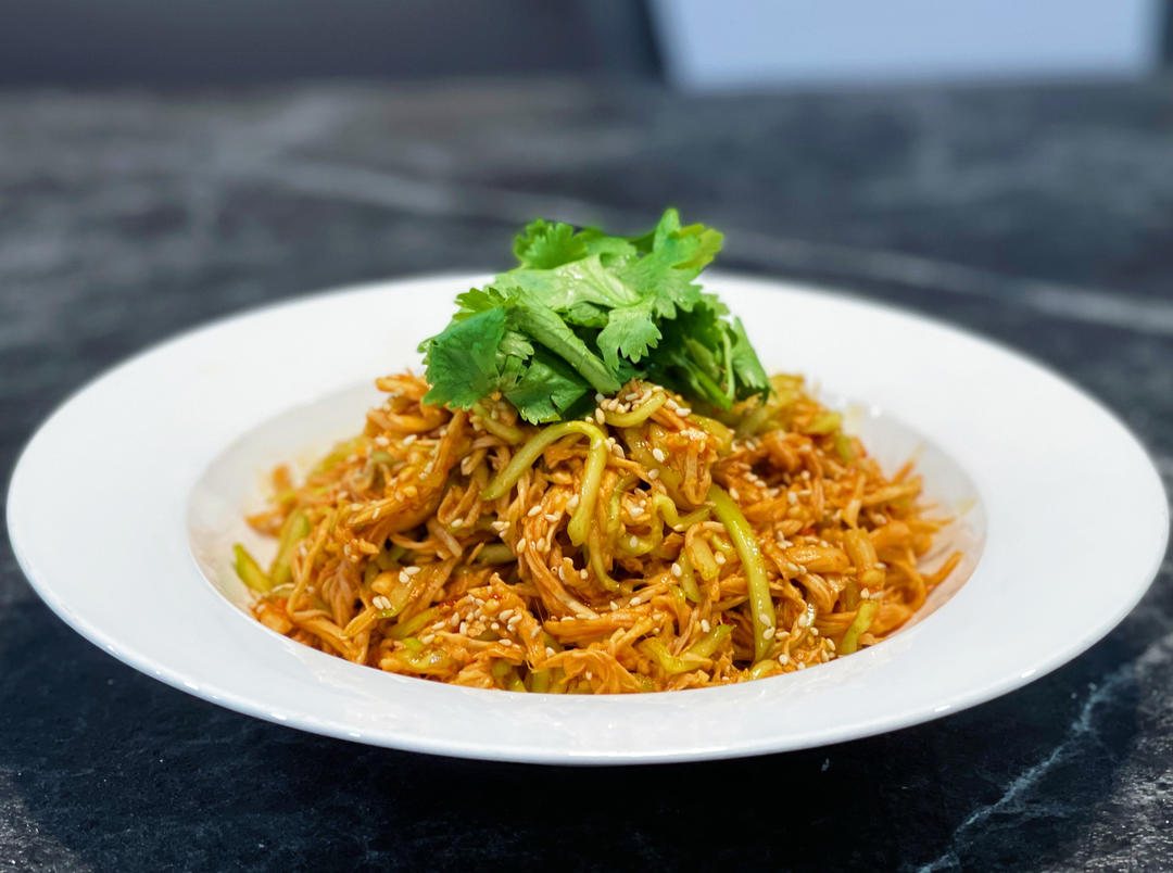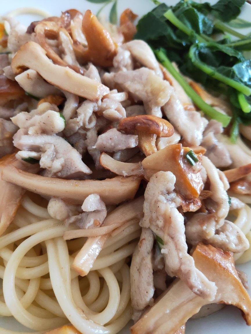 鸡油菇炒鸡拌面,很鲜美噢噢,只放了油和盐