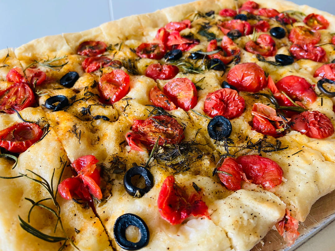 自己烤的油浸小番茄 加上 新鲜的百里香 迷迭香 小茴香 烤前撒黑胡椒和海盐各种香草随便撒都好吃的 橄榄是提味的精髓 #早...