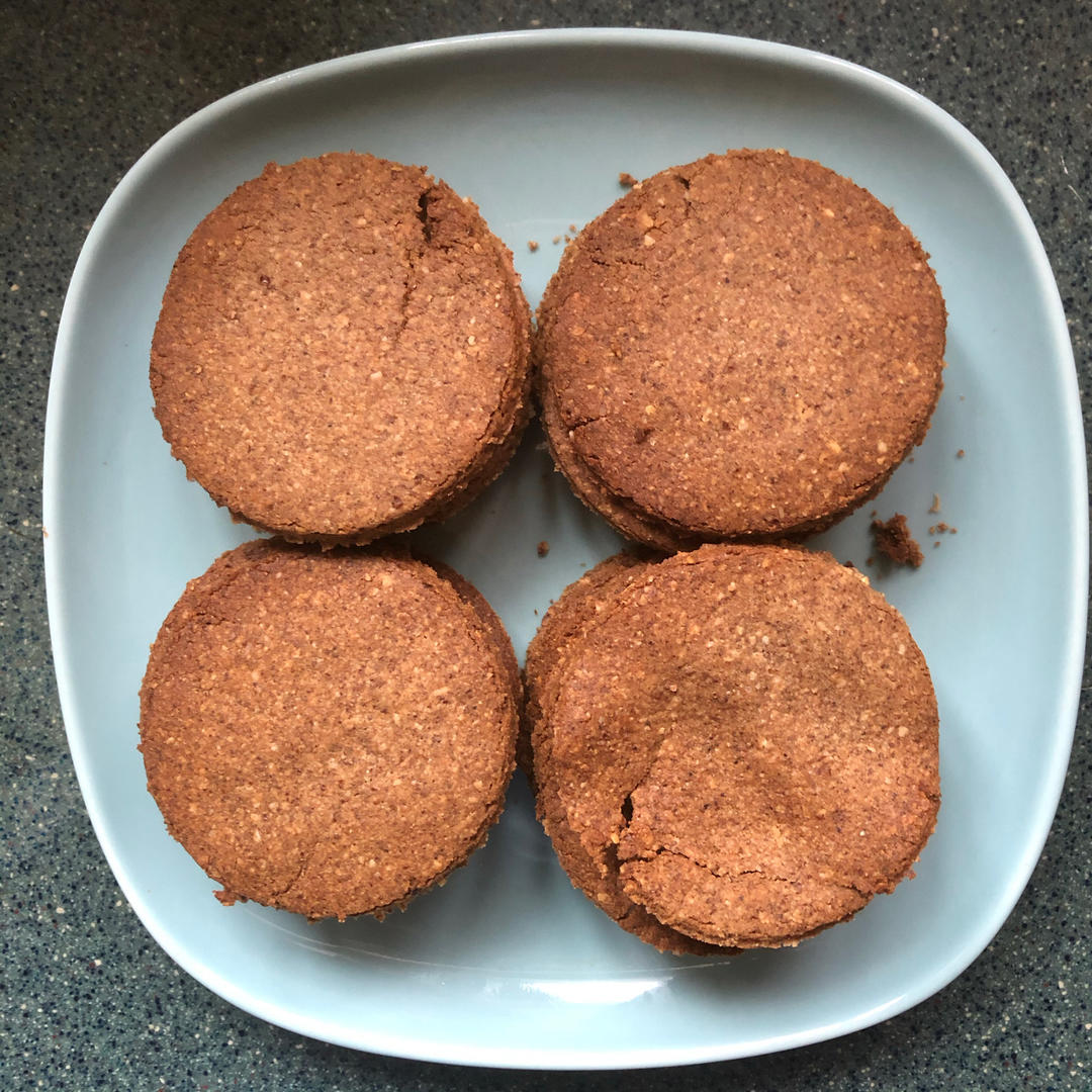 第一次做就成功了,二盘一起烤的。减了10糖。凉后就做了提拉米苏,味道不错。下次做饼干做厚...