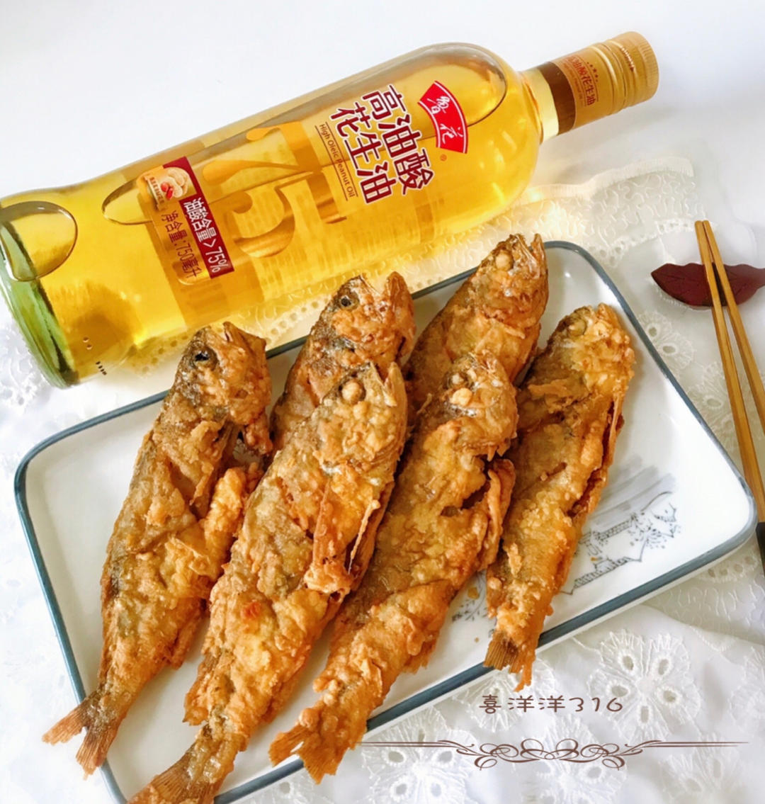 黄花鱼挂上一层薄薄的脆皮糊,使用鲁花高油酸花生油炸出来的黄花鱼,香气浓...