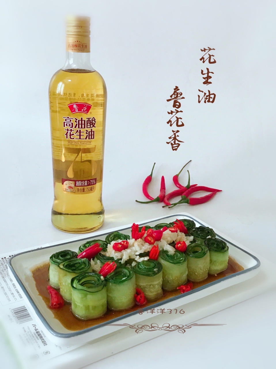 清脆爽口的黄瓜卷,浇上滚烫的鲁花高油酸花生油,滋啦一声,香味瞬间扑鼻而来...