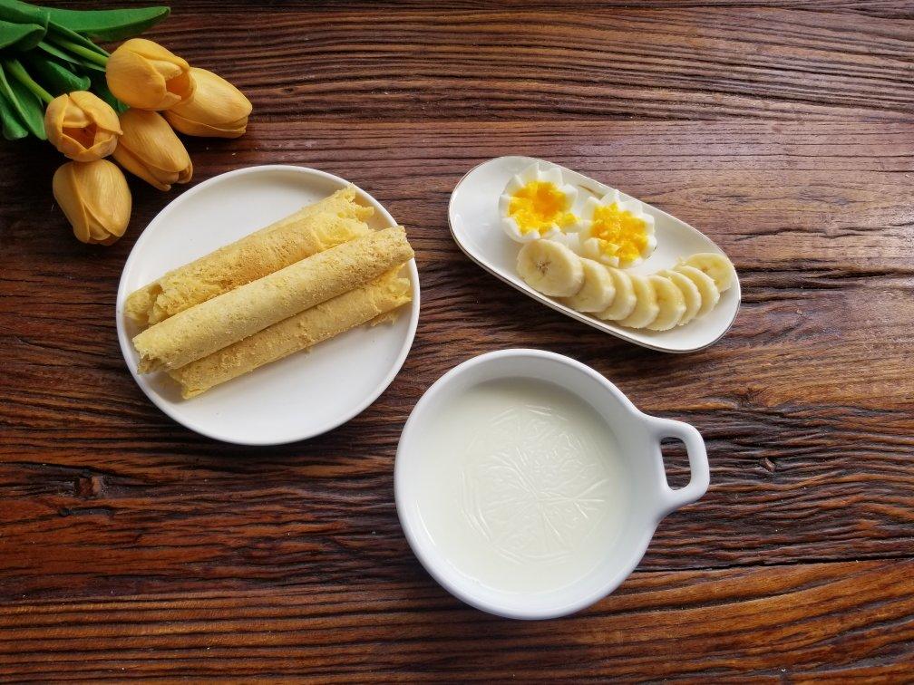 牛奶🥛+鸡蛋卷🍥+鸡蛋🥚+香蕉🍌