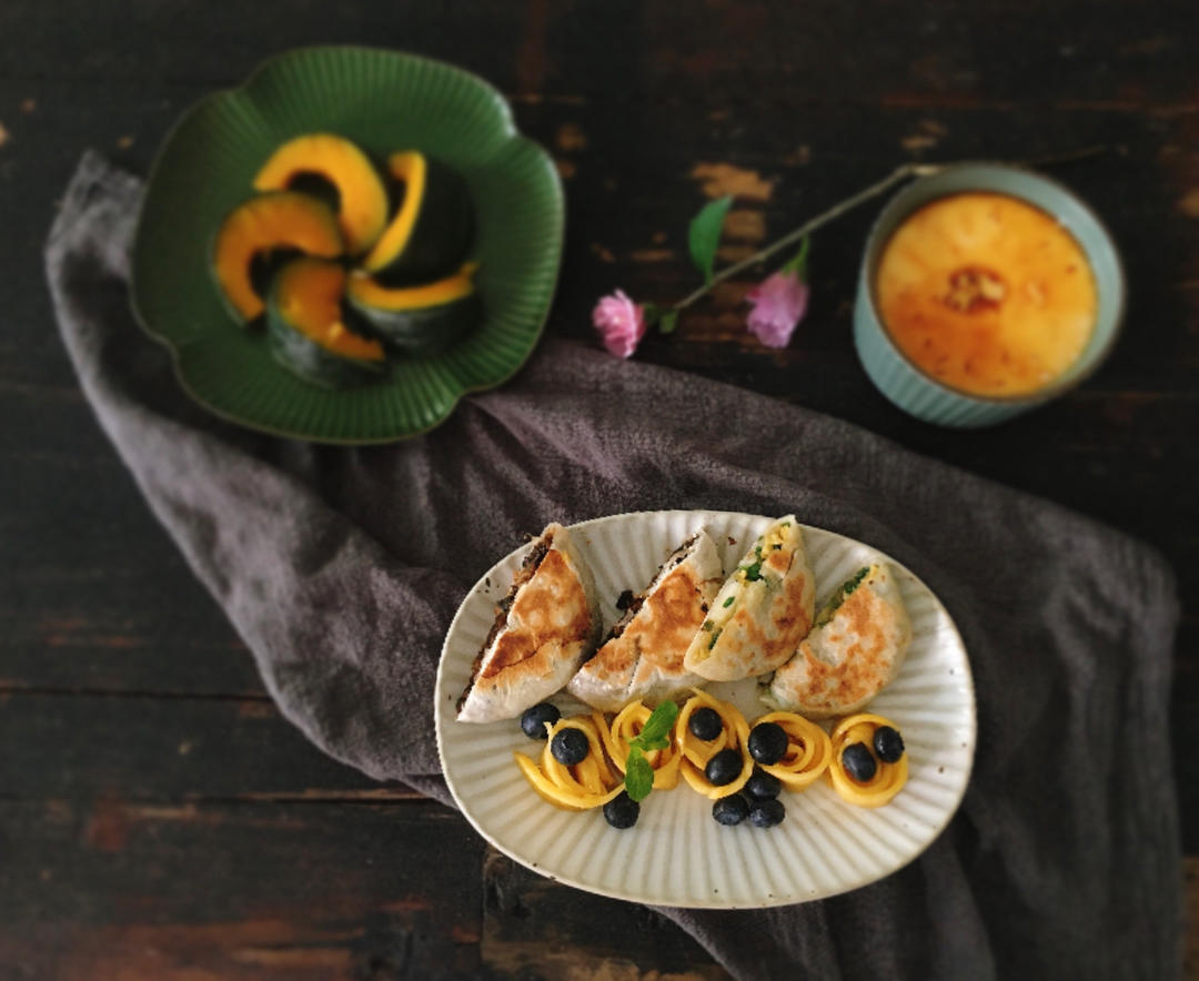 馅饼+南瓜+水蒸蛋+芒果+蓝莓