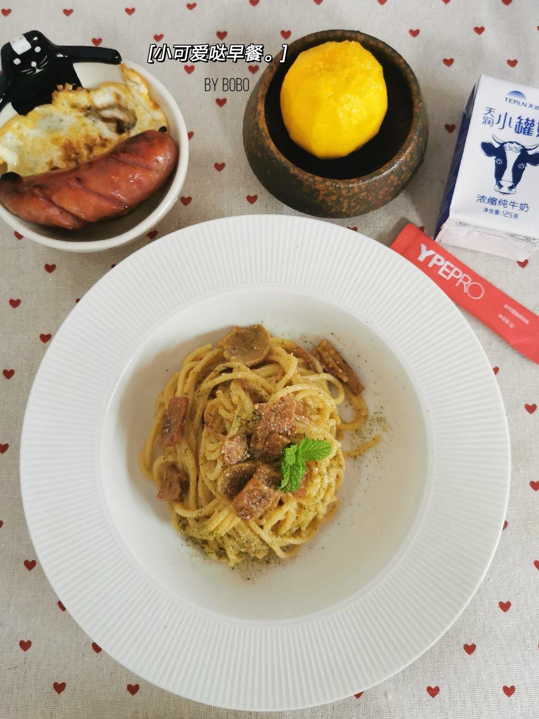 ❥培根蘑菇意面、荷...
