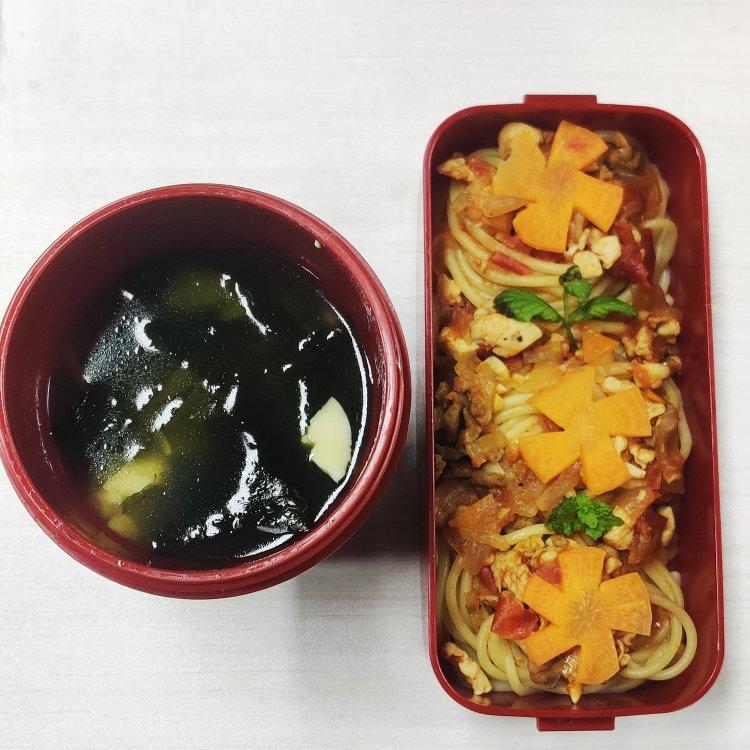 番茄鸡牛肉意面+裙带菜豆腐汤