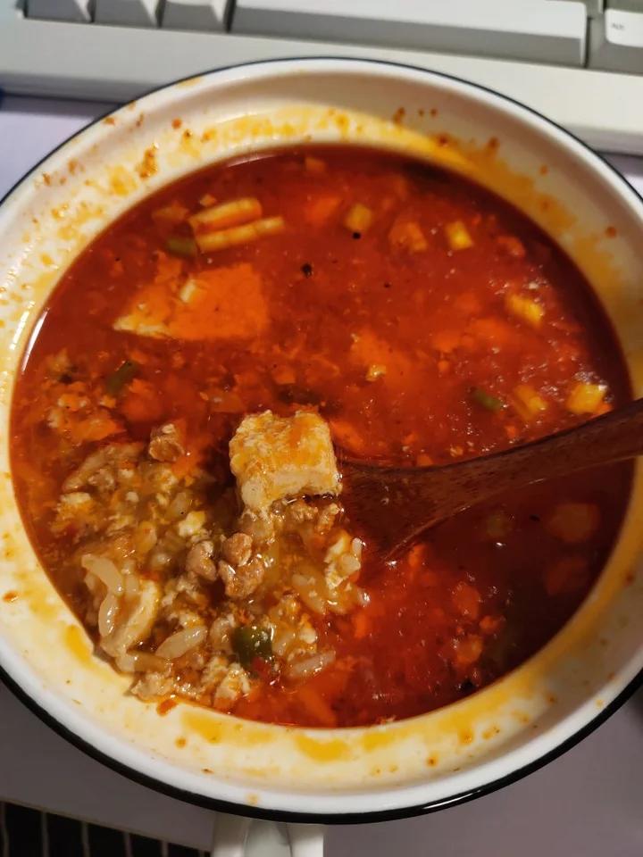 这次麻婆豆腐超好吃,用了刚买的贵州辣椒,辣味很足😋 就是冰箱结霜厉害,豆腐有小半块成冻豆腐了无语