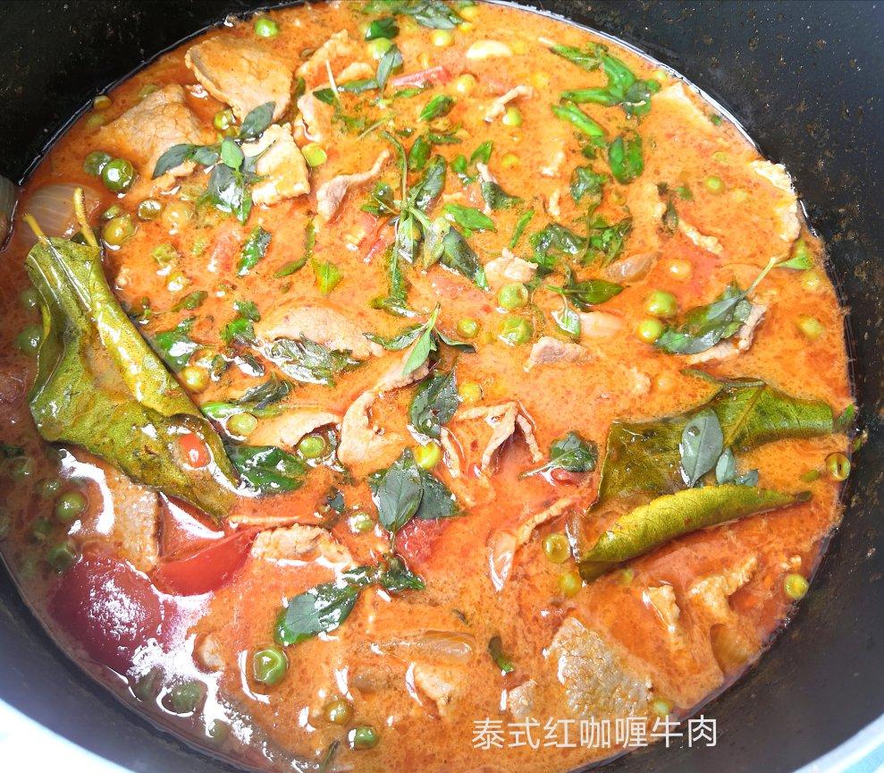 泰式红咖喱牛肉:在摩洛哥的超市能买到红咖喱酱、椰浆、鱼露,真是不错。柠檬叶是前些日子去乡村和一位老头说这个柠檬叶可以做菜...
