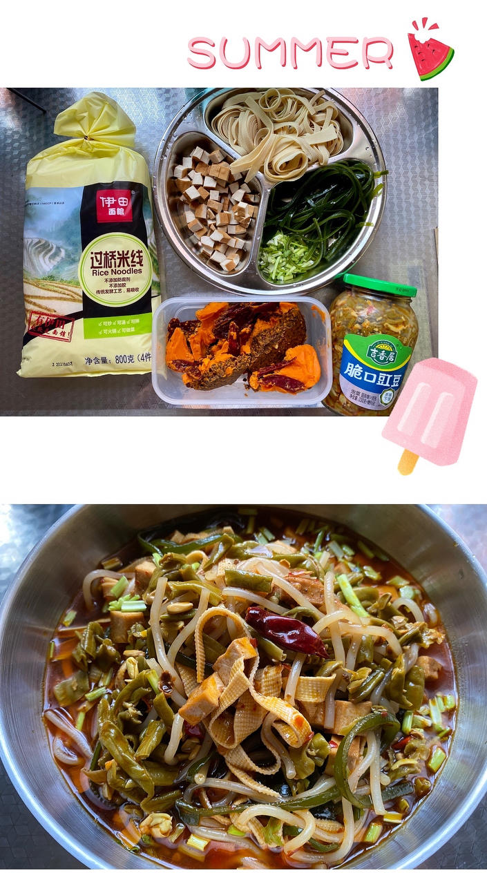 廖记棒棒鸡买的酸辣蕨根粉,不知道为什么是热的,单独加点黄瓜丝进去,拌匀放冰箱冷藏一会,拿...