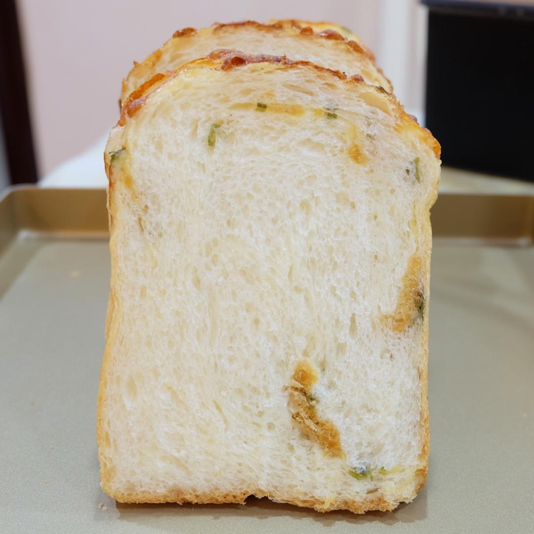 这个夏季喜欢上葱香味了,作品中隔三差五就出现葱味面包和蛋糕,这个混合蛋白霜与面糊时搅多了,它消泡了,成品矮了些,切片组织...