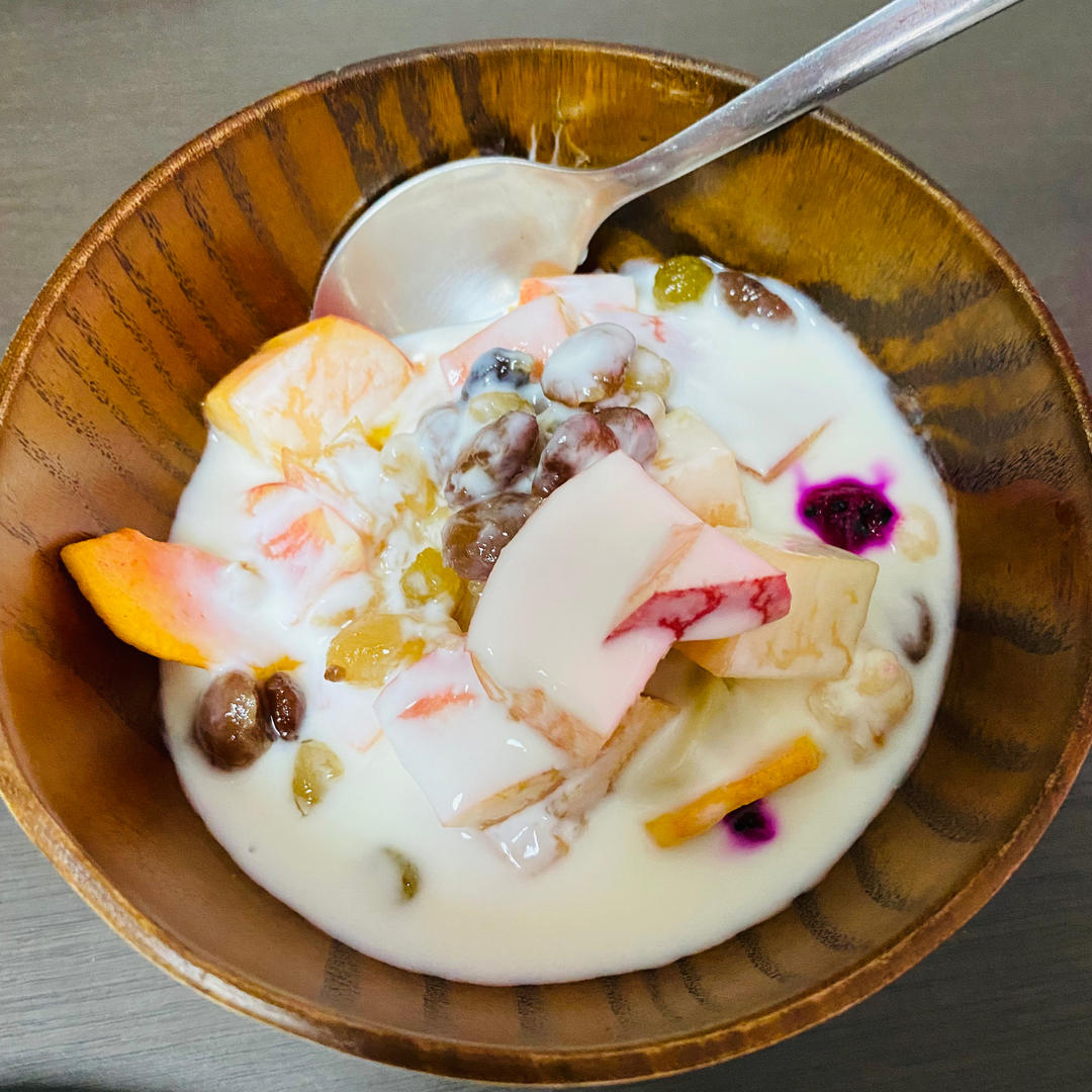 做的不太好,我开始的时候用豆浆机的酱汁功能做了两次,但牛奶仍然很稀,我放冰箱冷藏了好几个小时仍然是稀的、我以为会变硬的😂...