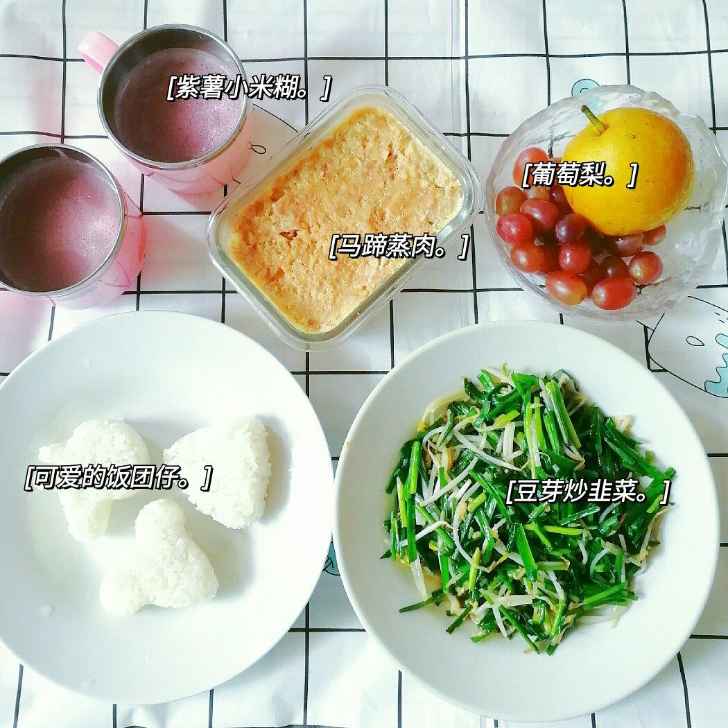 因为懒得煮汤,就弄了紫薯小米糊配米饭哈哈哈