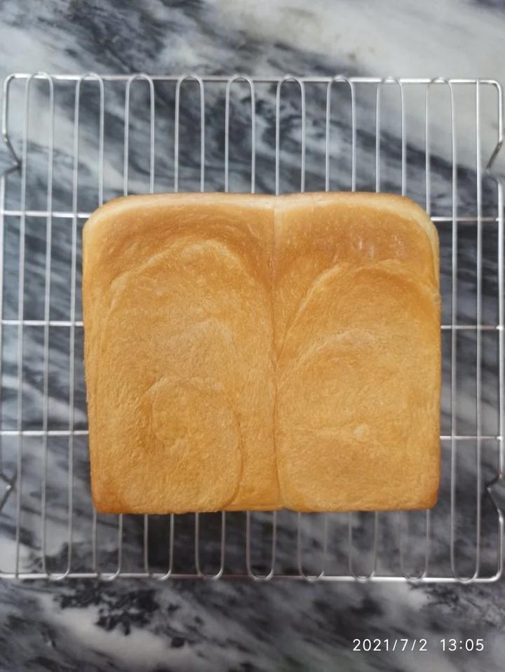 1、烤箱标注温度上下火180度烤制28分钟,吐司顶部上色过深,横着切开中间...
